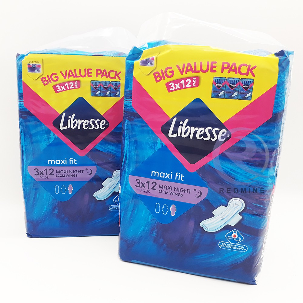 2 Packs Of Libresse Maxi Night Wings 32cm 3 X 12 Pads 6 X 12 Pads Shopee Malaysia